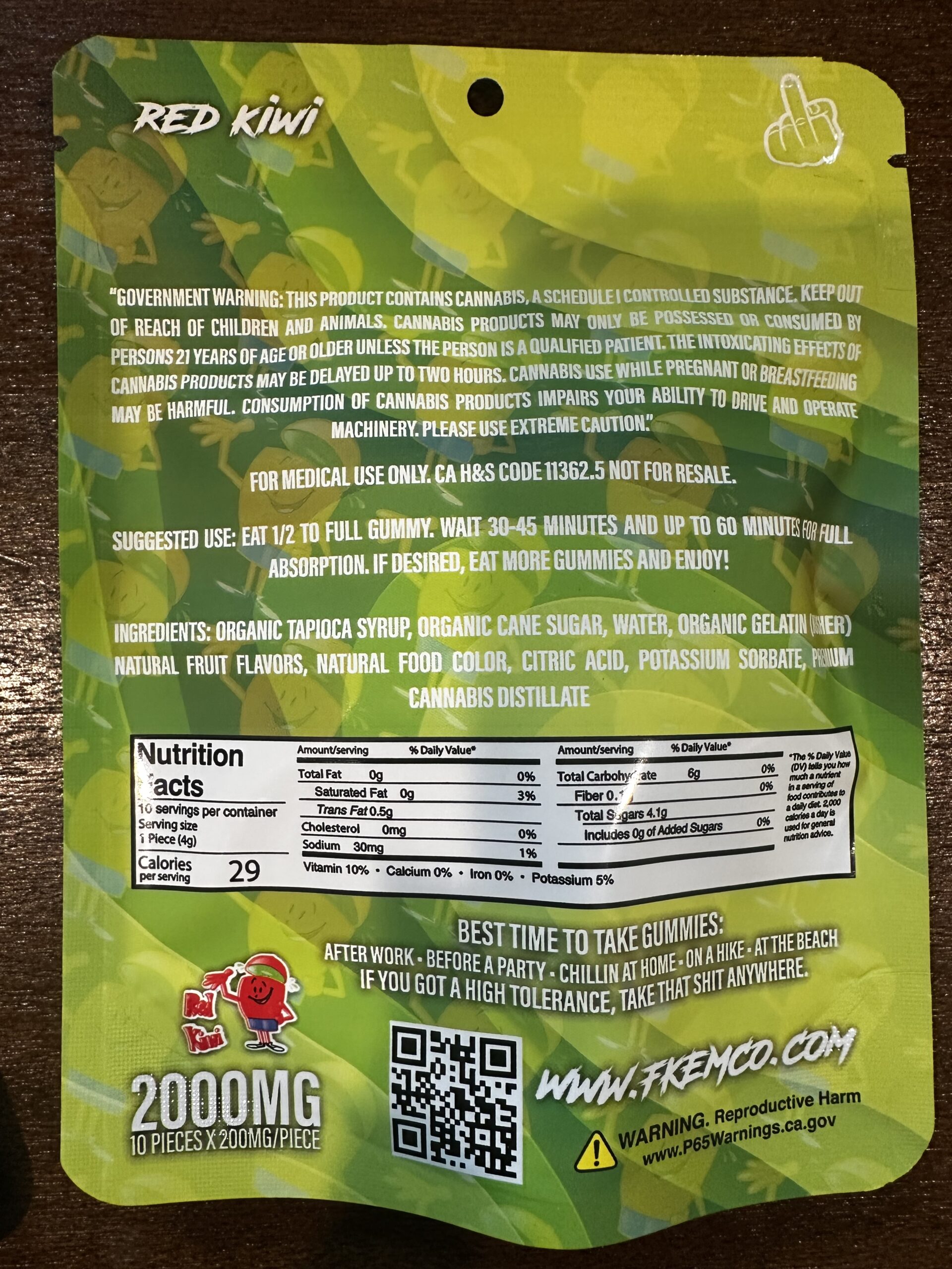 FKEM fruit gummies are bursting with a delicious fruity flavor and made with top-quality, premium cannabis distillate! Reach for these extremely potent gummies when you want a heavy buzz or to medicate for pain management. These potent gummies deliver some serious relaxation. Each gummy contains 200mg of THC, with a total of 2000mg THC in the entire package. Each pouch contains 10 gummies. We recommend waiting about 40-60 minutes after consumption to feel the full effects.